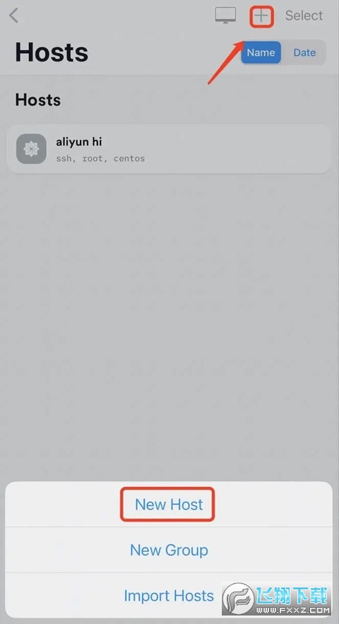 要添加主机,请单击+ 新主机或点击主机屏幕上的+。